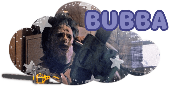 Don't judge a book by its human-skin cover; Bubba is a total sweetheart. His family pushes him to be violent; he is the largest and strongest member, but also the youngest and most timid - strangers scare him easily, frightened to the point of violence. He hides himself behind masks made from the faces of his previous catches. His best friend is his bright yellow chainsaw, which he uses to expertly cut down those he's told to target... Despite the violent shell, he loves to sing and dance and play games - he's also quite the chef, if you don't mind having people parts in your food.